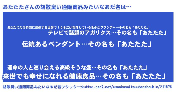 | ヘコむあだ名 | 『あたっちょ』『あたたた(遠い目)』 |
