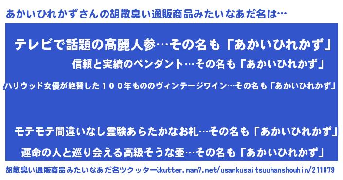 あかいひれかずさんの胡散臭い通販商品みたいなあだ名をツクッター!