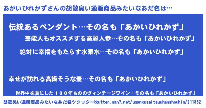 | ヘコむあだ名 | 『あかいひれかず(震え声)』『あかっちょ』 |