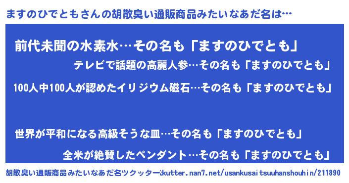 | ヘコむあだ名 | 『ますのひでとも(爆)』『ます太郎』 |