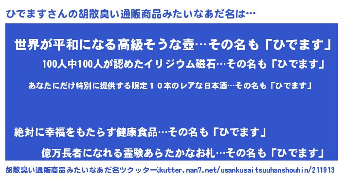| 意味不明あだ名 | 『住所不定無職ひでます(62歳)』 |