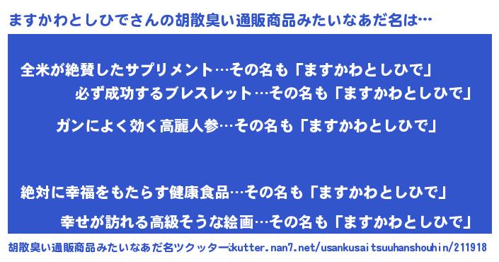 | 意味不明あだ名 | 『自称ますかわとしひで』 |