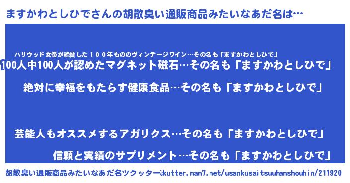 | ヘコむあだ名 | 『ますかわとしひで(笑)』『ますぷりん』 |