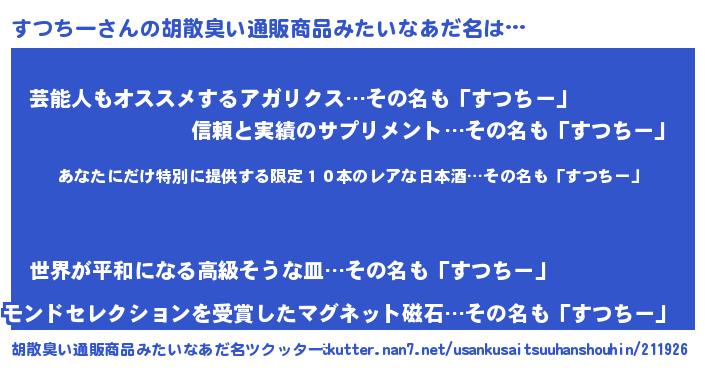 | 意味不明あだ名 | 『ヨモギ科すつちー属』『自称すつちー』 |