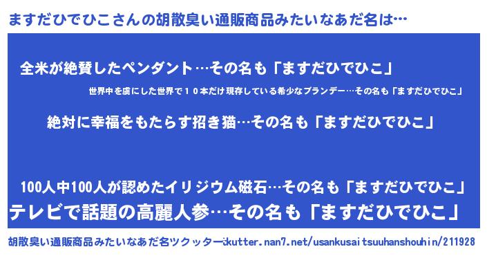 | ヘコむあだ名 | 『ますだひでひこ(笑)』『ますっちょ』 |