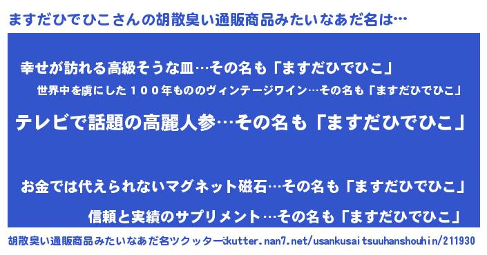| 男性向けラノベタイトル風あだ名 | 『はたらくますだひでひこさま!』 |