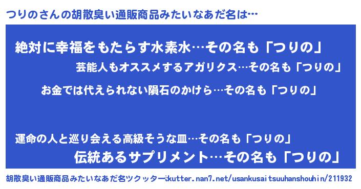| ヘコむあだ名 | 『つりの(遠い目)』『つりっちょ』 |