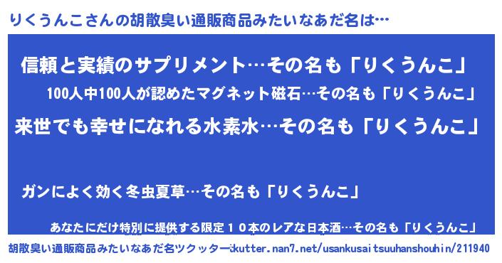 | 意味不明あだ名 | 『永久保存りくうんこ』『自称りくうんこ』 |