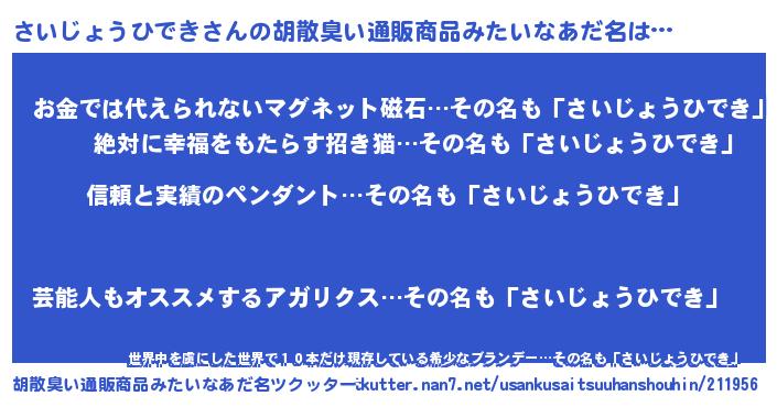 | ヘコむあだ名 | 『さいぷりん』『さいじょうひでき(笑)』 |
