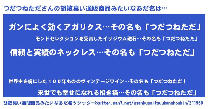 | ヘコむあだ名 | 『つだっ子』『つだつねただ(苦笑)』 |