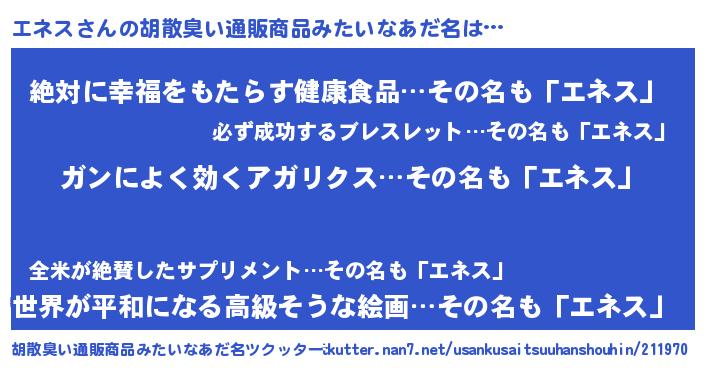 | ヘコむあだ名 | 『エネス(苦笑)』『牛乳』『エネを』 |