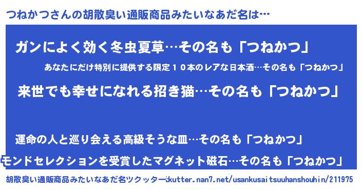 | ヒーロー風カッコイイあだ名 | 『ネオツネカツ』『超時空戦士ツネカツ』 |