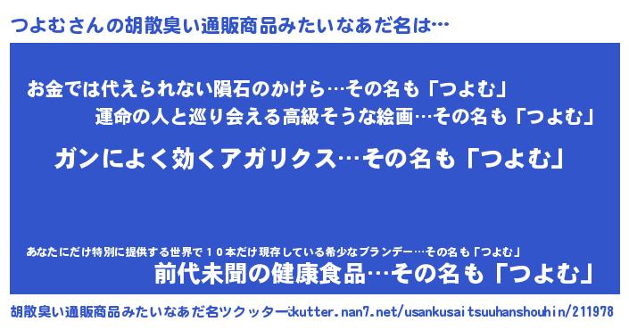 | ヘコむあだ名 | 『つよむ(笑)』『豆乳』『つよにー』 |
