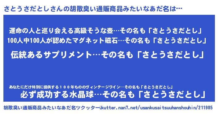 | 意味不明あだ名 | 『とにかく怪しいさとうさだとし』 |