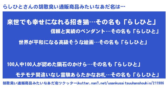 らしひとさんの胡散臭い通販商品みたいなあだ名をツクッター!