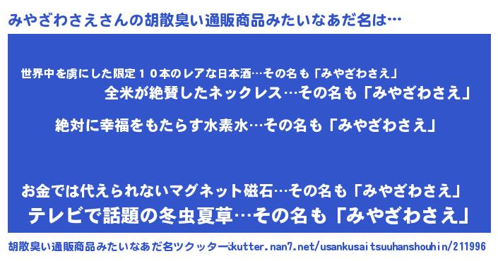 | 意味不明あだ名 | 『永久保存みやざわさえ』 |