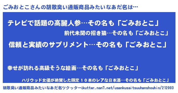 | 料理風あだ名 | 『ごみおとこの豆乳スープ』 |