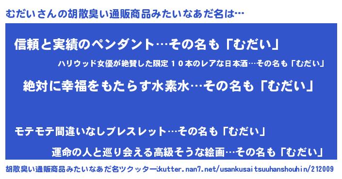 | ヘコむあだ名 | 『むだい(苦笑)』『むだぷりん』 |