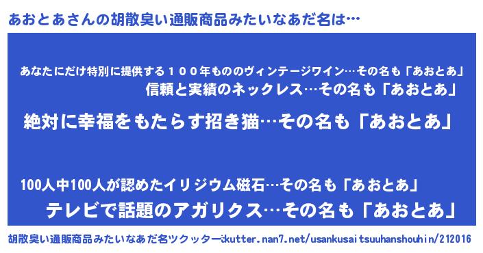 | 伝説のあだ名 | 『聞きしに勝る吟遊詩人あおとあ』 |