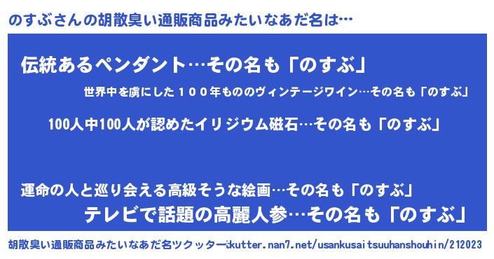 | ヘコむあだ名 | 『のすっ子』『豆乳』『のすぶ(笑)』 |