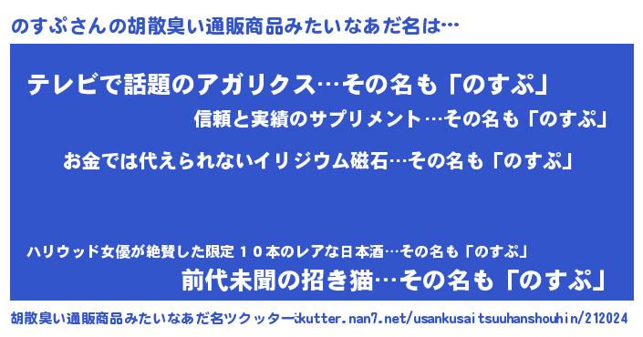 | 意味不明あだ名 | 『もやし科のすぷ属』『自称のすぷ』 |