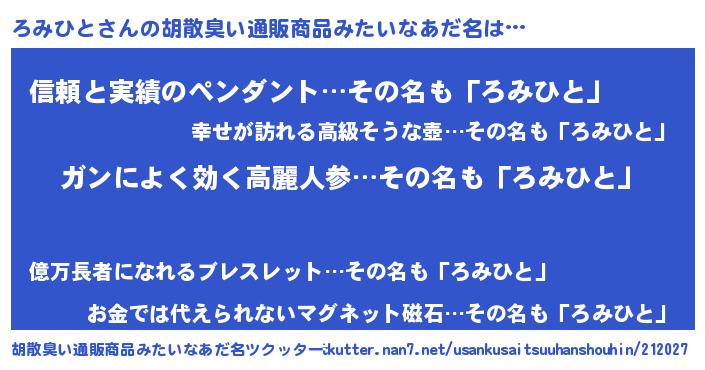 | 肩書あだ名 | 『ろみひと閣下』『ろみひとリーダー』 |