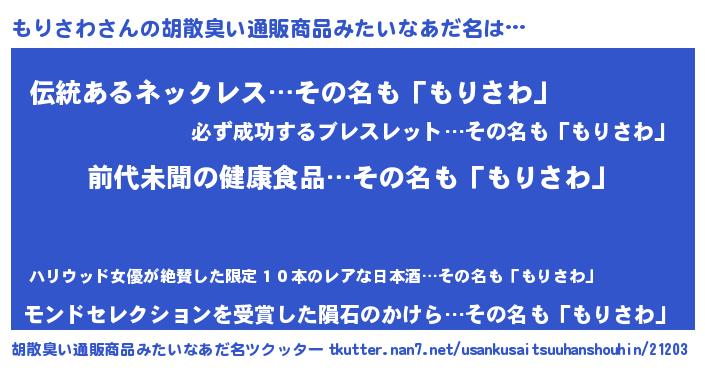 | ヘコむあだ名 | 『もりさわ(笑)』『もりを』 |
