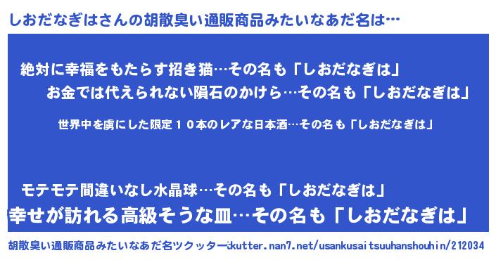 | 意味不明あだ名 | 『住所不定無職しおだなぎは(59歳)』 |