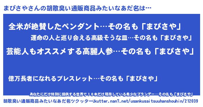 | 意味不明あだ名 | 『自称まぴさや』『まぴさやフォーエバー』 |