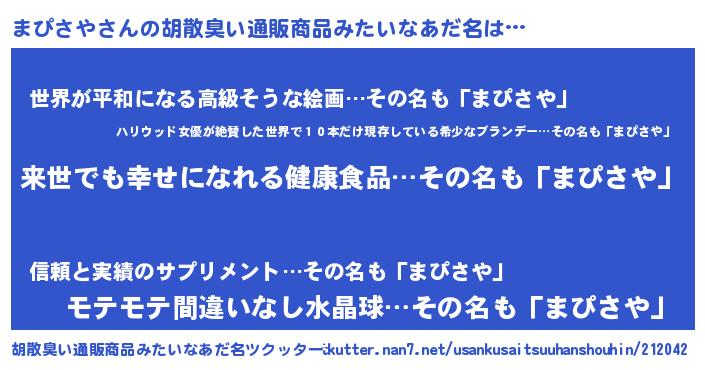 | ヘコむあだ名 | 『まぴさや(笑)』『なまこ酢』 |