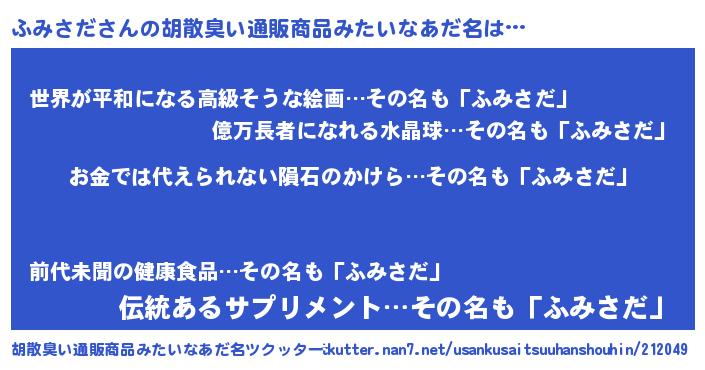 | 女子向けラノベタイトル風あだ名 | 『ふみさだ恋絵巻』『ふみさだ伯爵の花嫁』 |