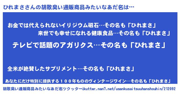| 意味不明あだ名 | 『自称ひれまさ』『永久保存ひれまさ』 |