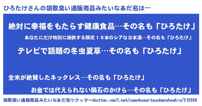| ヘコむあだ名 | 『ひろたけ(苦笑)』『ひろっ子』 |