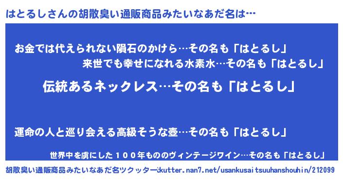 | 意味不明あだ名 | 『とにかく怪しいはとるし』 |