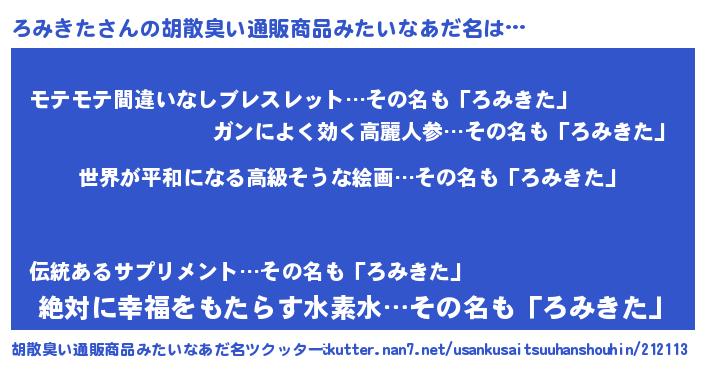 | 男性向けラノベタイトル風あだ名 | 『転生したらろみきただった件』 |