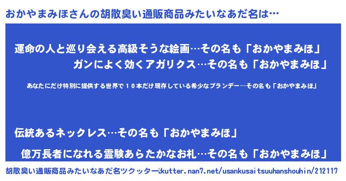 | 意味不明あだ名 | 『住所不定無職おかやまみほ(86歳)』 |