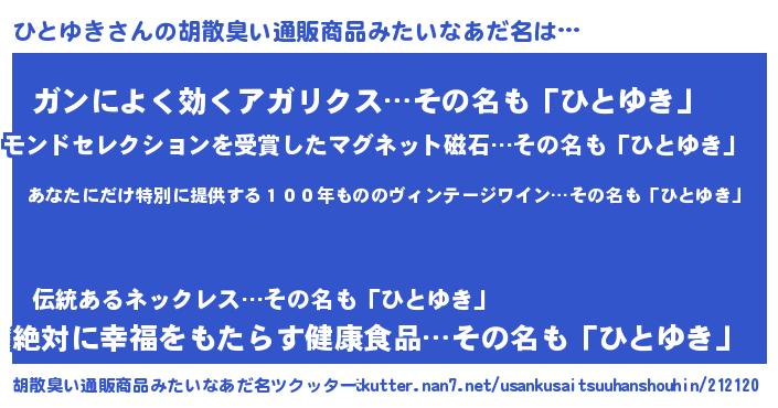 | ヘコむあだ名 | 『ひとゆき(小並感)』『ひとっちょ』 |