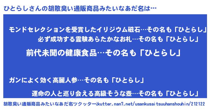 | ヒーロー風カッコイイあだ名 | 『ネオヒトラシ』『慈愛の使者ひとらし』 |