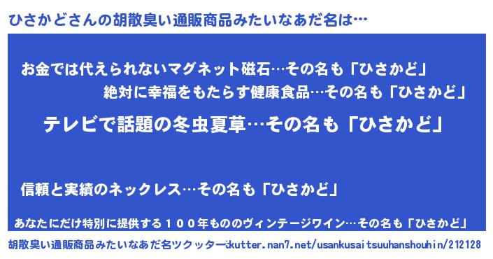 | ヘコむあだ名 | 『ひさかど(遠い目)』『ひさお』 |