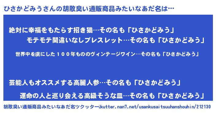 | 2chまとめサイト | サイト名『ニューひさかどみう速報』 |