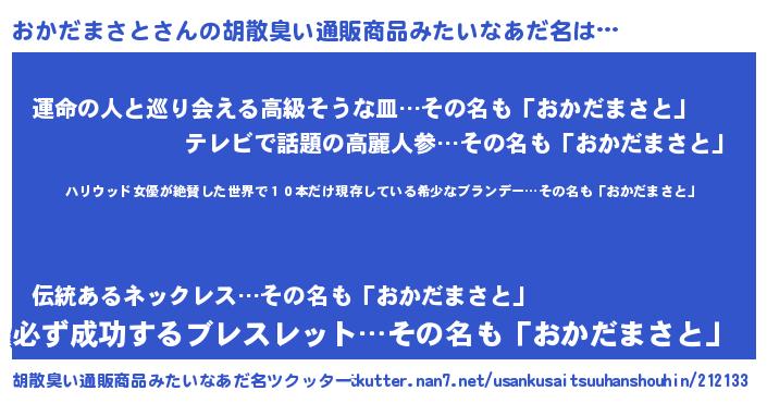| 意味不明あだ名 | 『住所不定無職おかだまさと(95歳)』 |