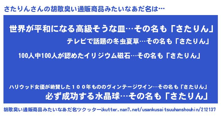 | 欧米人風あだ名 | 『ダニエルさたりん』『マイケルさたりん』 |