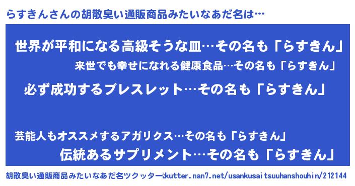 | 意味不明あだ名 | 『ペロリンらすきん』『永久保存らすきん』 |