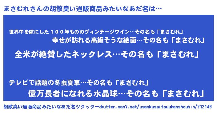 | 意味不明あだ名 | 『とにかく怪しいまさむれ』 |