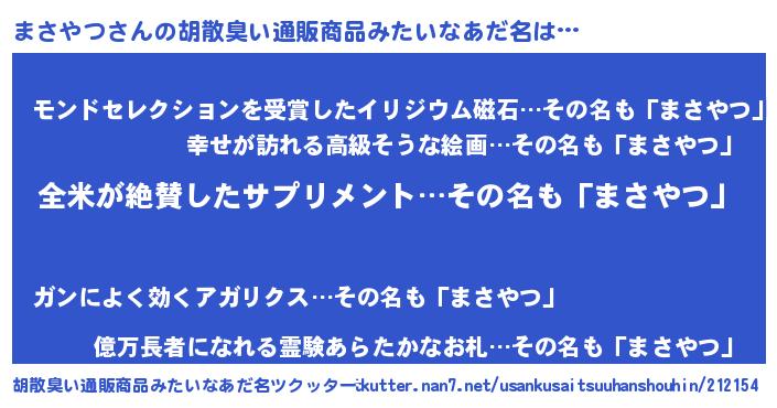 | 意味不明あだ名 | 『とにかく怪しいまさやつ』 |