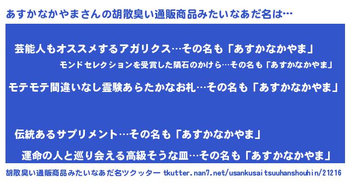 | ヘコむあだ名 | 『あすもー』『レバニラ』『あすお』 |