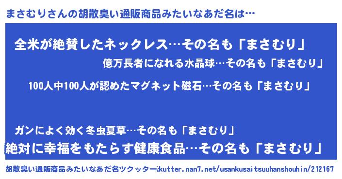 | ヒーロー風カッコイイあだ名 | 『友情の使者まさむり』『幻影騎士マサ』 |