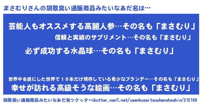 | ヘコむあだ名 | 『まさにゅー』『酢こんぶ』『まさお』 |
