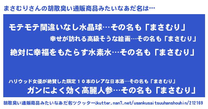 | 男性向けラノベタイトル風あだ名 | 『まさむりという概念が存在しない退屈な世界 』 |