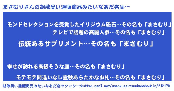 | ヘコむあだ名 | 『まさを』『まさもー』『なまこ酢』 |